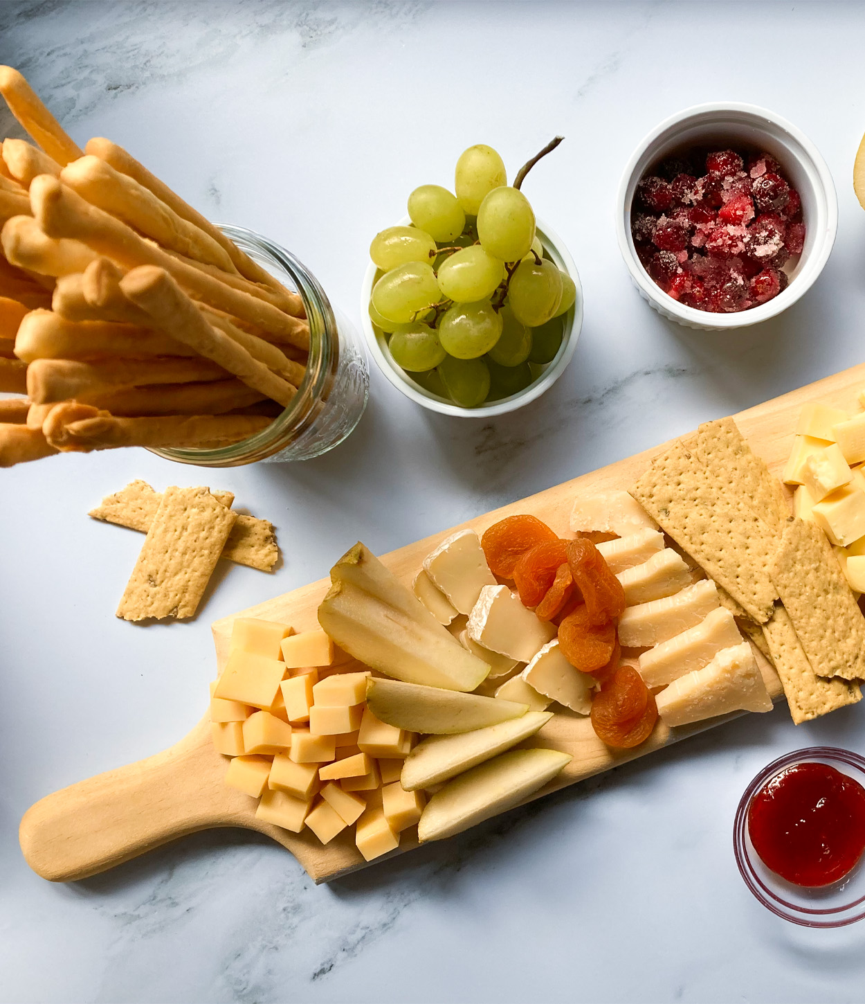 Puedes utilizar frutas frescas como uvas, peras o manzanas. También pueden ser deshidratadas como albaricoques, cranberries. Estos funcionan muy bien con los quesos ya que aportan notas de dulzura que resaltará el sabor de los quesos. Otra opción es elegir frutos secos como nueces, almendras, macadamia, etc. Puedes hacer sus combinaciones favoritas!