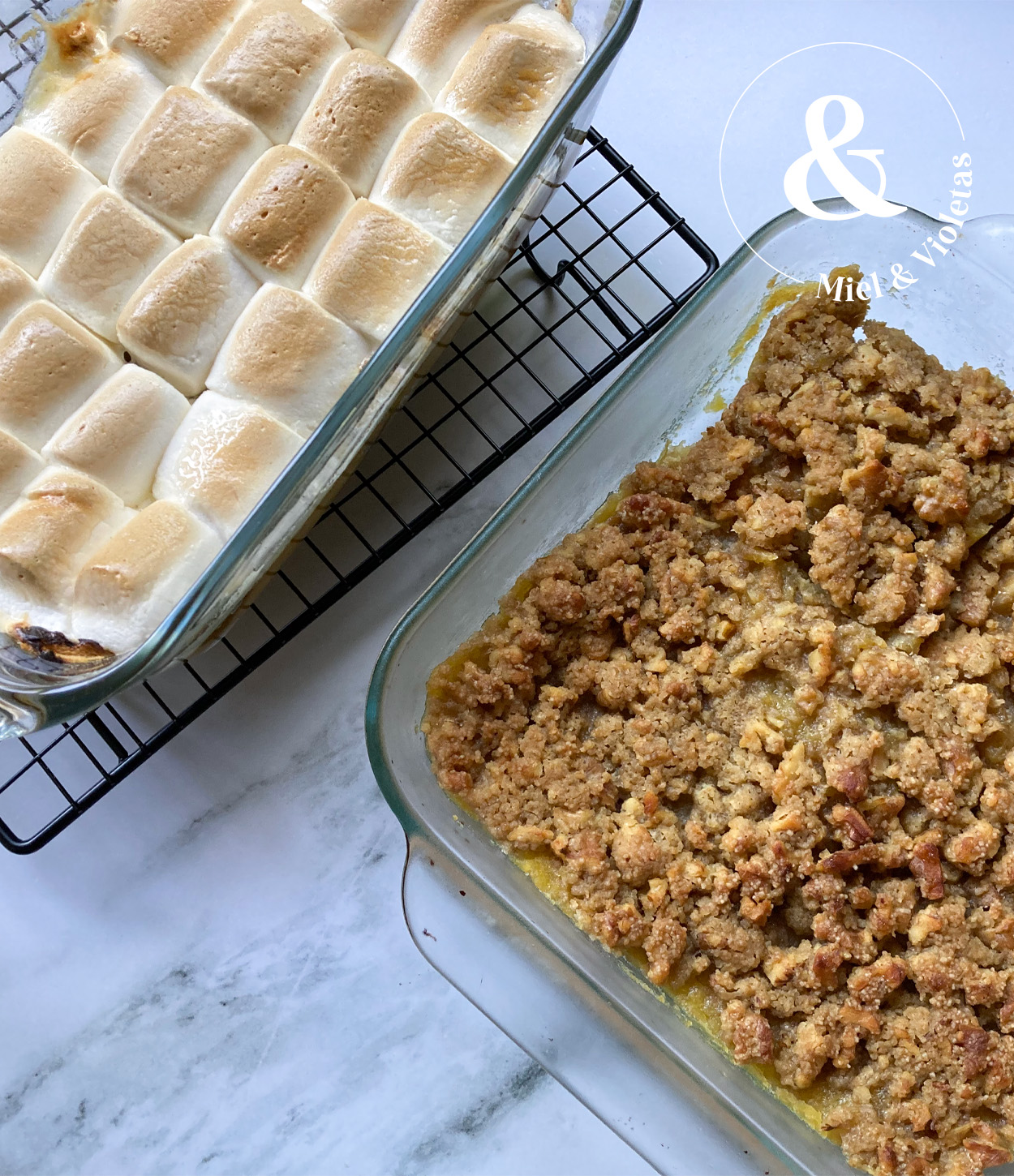 A continuación detallo 2 versiones: una con morshmallows y otra con una cobertura de nueces. Ambas son deliciosas.